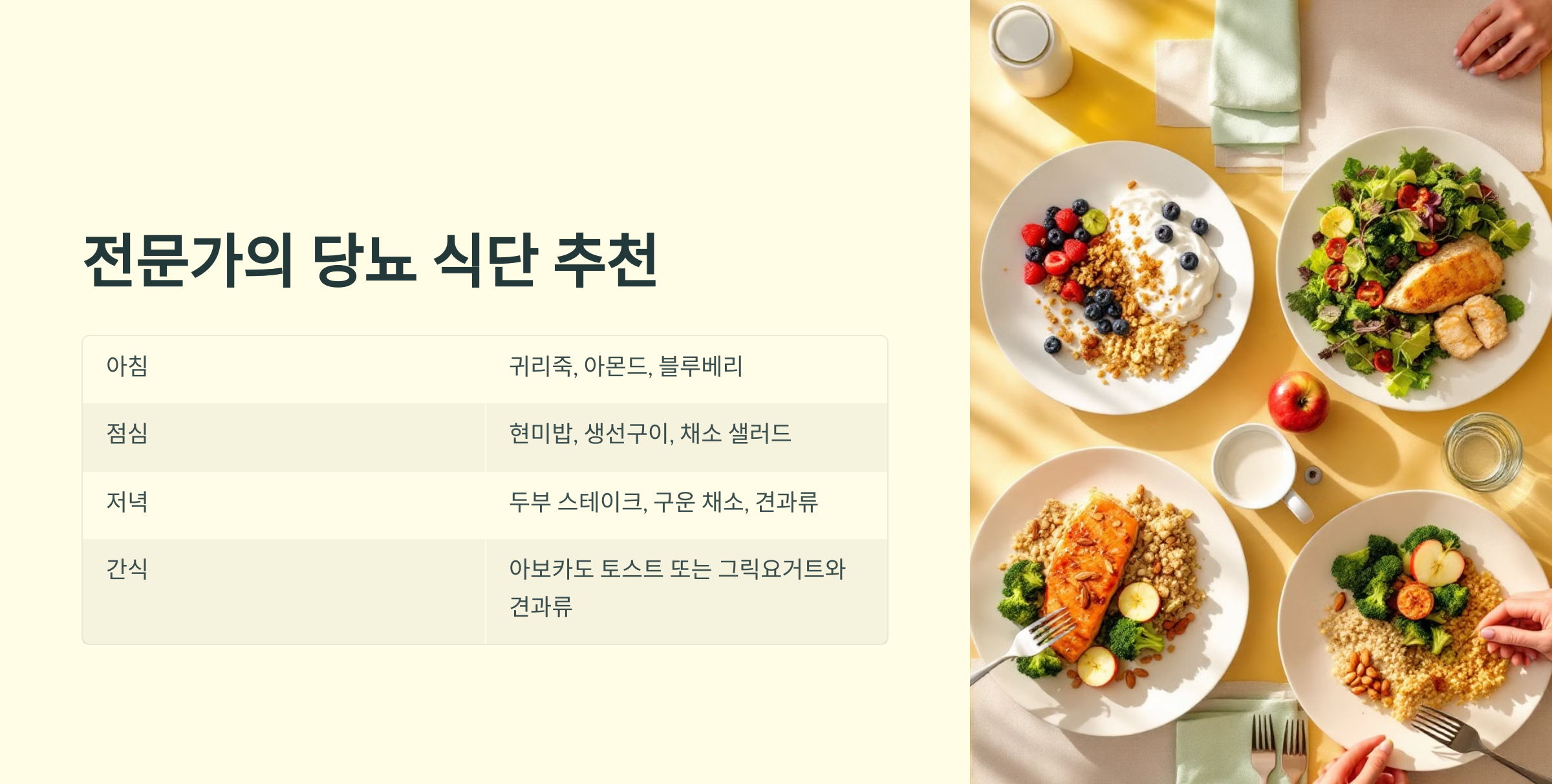 이 식단은 혈당을 급격히 올리지 않으면서도 영양소가 균형 있게 포함되어 있어 당뇨 환자에게 도움이 됩니다.