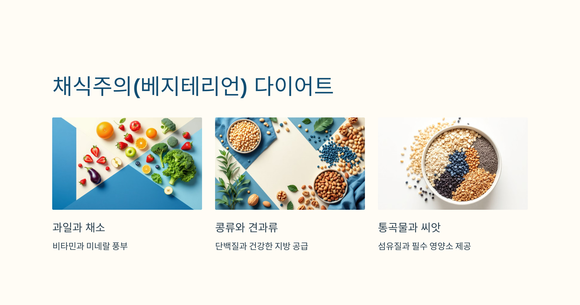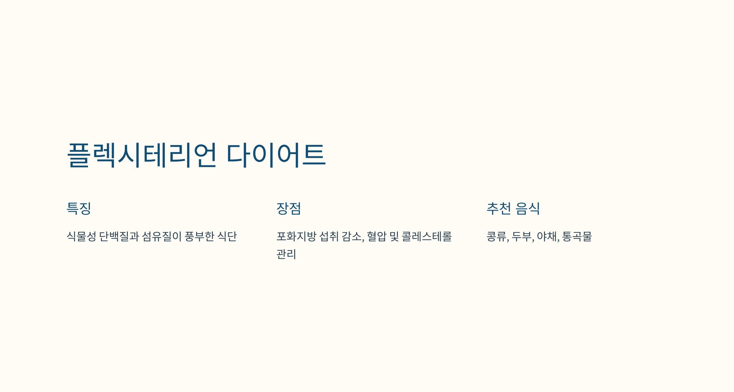 - 특징: 식물성 단백질과 섬유질이 풍부한 식단