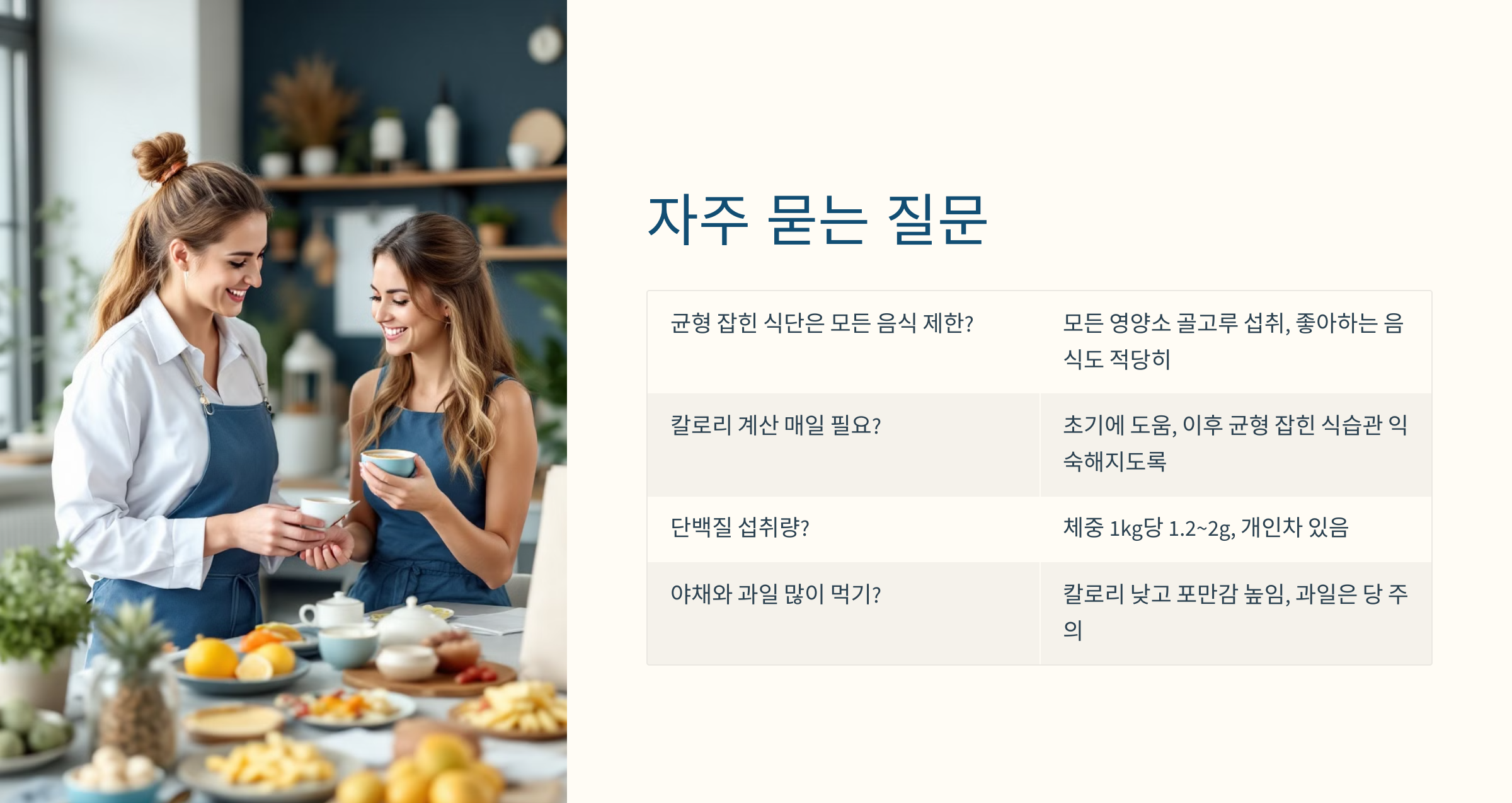 A1: 균형 잡힌 식단은 특정 음식을 제한하기보다는 모든 영양소를 골고루 섭취하는 것을 의미합니다. 자신이 좋아하는 음식도 적당히 즐기며 건강한 식단을 유지할 수 있습니다.